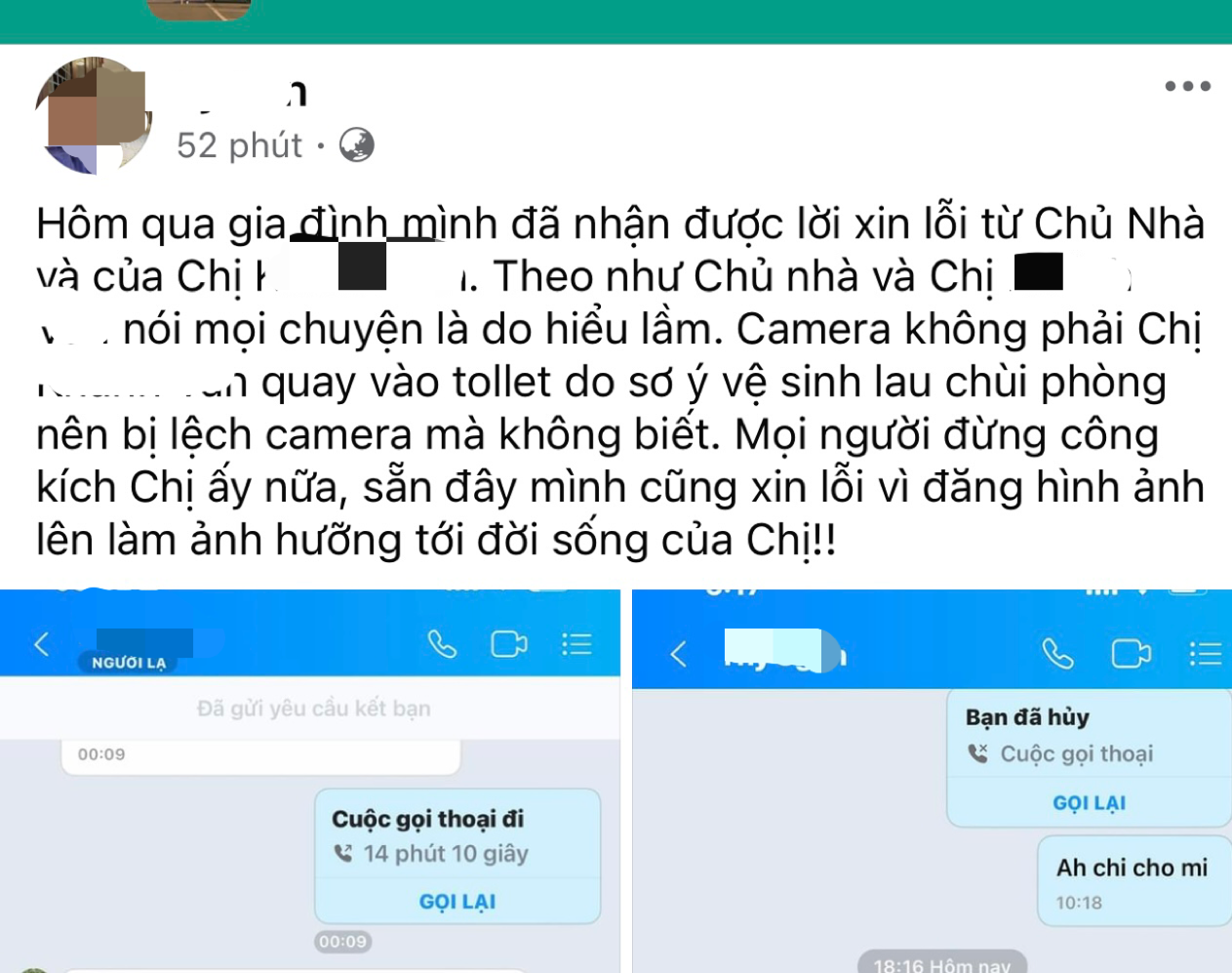 Tuy nhiên, chị K.V cũng thấy rằng việc có camera bên trong căn hộ nhưng khách không hề biết là do sơ suất từ phía chị, đã khiến khách hàng có trải nghiệm không tốt. "Tôi rất xin lỗi khách hàng về vấn đề này, và khẳng định không hề có mục đích xấu như nhiều thông tin sai lệch trên mạng xã hội. Tôi cũng đã làm việc với bên công an, phía lắp đặt camera để thông tin vụ việc một cách khách quan nhất" - chị K.V nói.