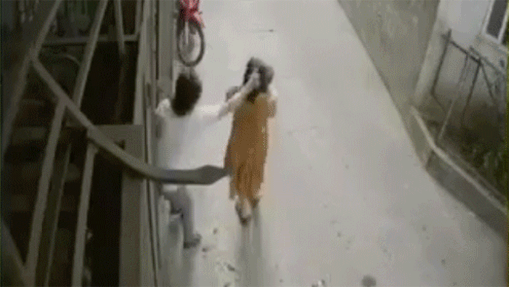 Khi chị C. bế con bỏ đi được một bước thì anh V. dùng tay túm tóc kéo ngược lại khiến chị C. và bé Tr. Ngã ngửa về phía sau, khiến 2 mẹ con bị thương.