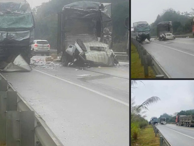 Theo Cục CSGT (Bộ Công an), khoảng 13h30 cùng ngày tại km 189+100 đường cao tốc Nội Bài - Lào Cai xảy ra vụ tai nạn giao thông rất nghiêm trọng giữa 2 xe ô tô tải đi ngược chiều.