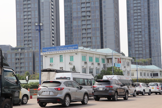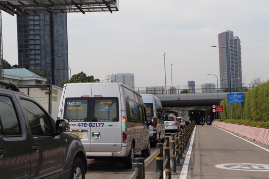 Đến 12 giờ cùng ngày, giao thông qua hầm vẫn bị ùn tắc, xe di chuyển chậm chạp để vào trung tâm TP HCM..