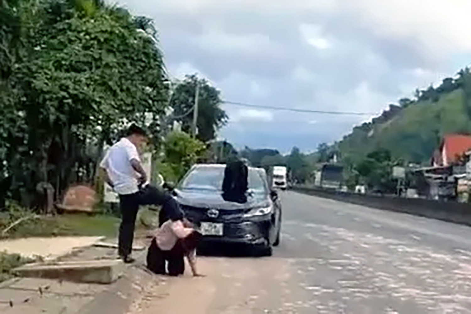 Anh T. bỏ đi thì bị chị H. đuổi theo, và được cho có nhiều lời lẽ khiếm nhã khi nói chuyện với người này. Khi đi được chừng 10 km, anh T. bực tức lao xuống đường, rồi đạp vào người chị H. thì bị người dân chứng kiến, quay lại video đưa lên mạng xã hội.