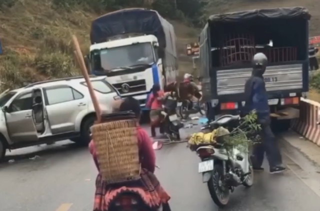 Khi đoàn người đi xe máy đang dừng lại để xem vụ tai nạn trên, xe ô tô tải do anh Hà Xuân M. (trú tại huyện Tân Sơn, tỉnh Phú Thọ) điều khiển đi theo hướng Hà Nội- Sơn La vào cua mất lái, tiếp tục đâm vào một xe con và 1 xe máy do chị Giàng Thị Đ. (trú tại huyện Vân Hồ, tỉnh Sơn La) điều khiển. Thời điểm này chị Đ. đang chở theo 2 con.