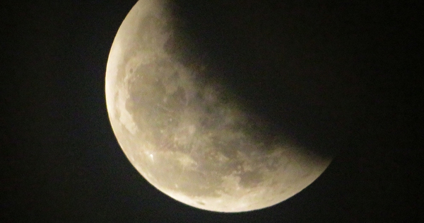Với thiết bị quan sát tốt, bạn có thể nhìn được cảnh mặt trăng bị "cắn dở" một lần nửa, nhưng lần này phần bị cắn mất đơn giản là hơi tối hơn.