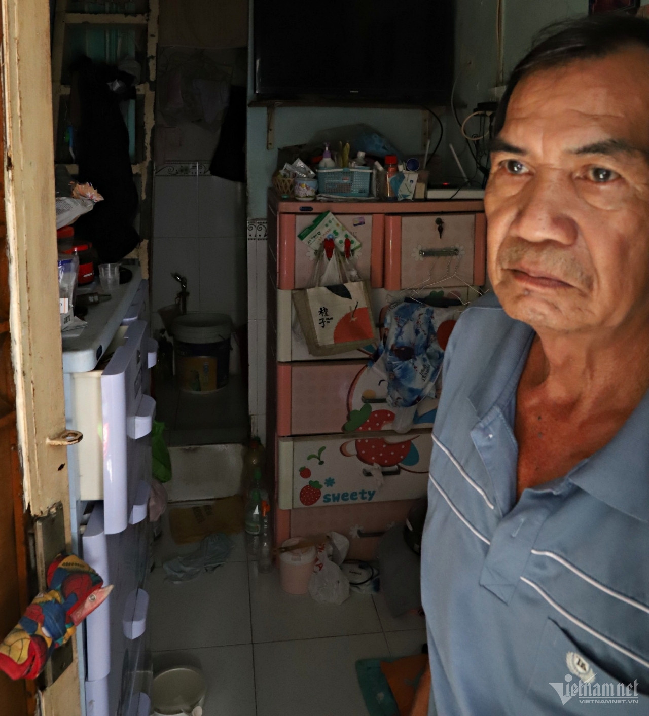 Do đó, bà Quýt tận dụng khoảng trống của con hẻm trước cửa nhà làm chỗ nấu ăn. Điều khổ nhất với bà là cả gia đình phải giặt giũ và đi nhờ vệ sinh với hộ bên cạnh.