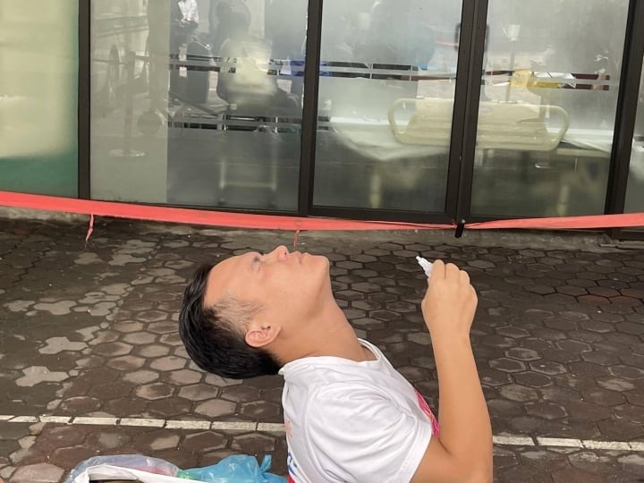 Chưa hết bàng hoàng, ngồi bên ngoài cửa Khoa Cấp cứu Bệnh viện Đại học Y Hà Nội đợi tình hình sức khỏe của vợ, anh Anh Lưu Văn C. (30 tuổi, quê Nam Định) liên tục nhỏ thuốc vào mắt sau nhiều giờ chịu hơi cay và khói.