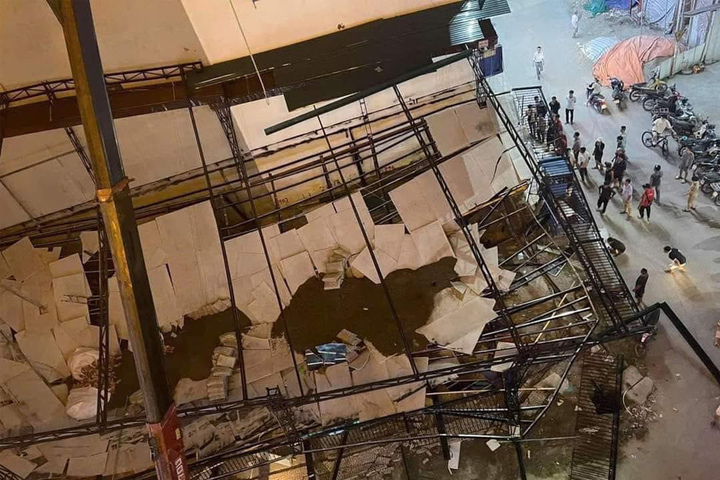 Cụ thể, khoảng 19h ngày 9/10, lực lượng chức năng nhận được tin báo khu vực nhà hàng đang trong quá trình xây dựng thuộc khu đô thị mới Văn Giang (thị trấn Văn Giang) bất ngờ đổ sập. Toàn bộ phần mái sắt, sàng tầng 2 của nhà hàng sập, hư hỏng hoàn toàn.