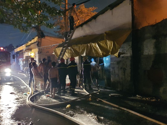Đến 21 giờ 30 phút ngày 23/11, lực lượng chức năng vẫn ráo riết xử lý đám cháy trong một nhà xưởng ở quận 12, TP HCM.