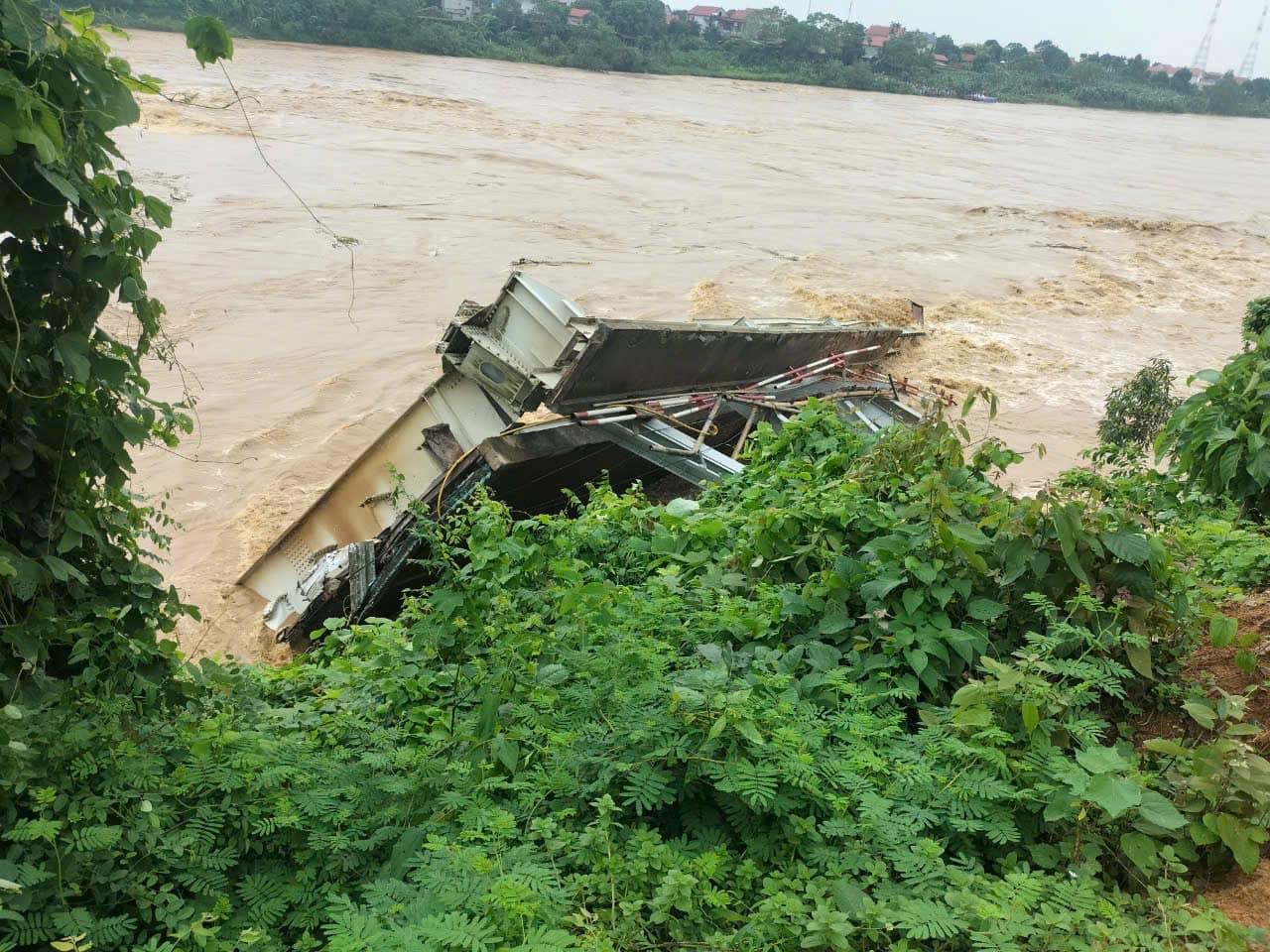 Sáng nay (ngày 9/9) cầu Phong Châu nối 2 huyện Lâm Thao và Tam Nông (Phú Thọ) bất ngờ sập, 2 nhịp cầu rơi hoàn toàn xuống lòng sông.