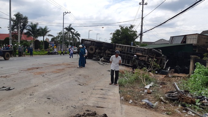 Ngay sau đó, xe tải mang BKS: 62C-139.38 tông vào chiếc xe máy mang BKS: 47C1-220.80 do chị Phạm Thị Hồng (SN 982) chở cháu là Trịnh Bá Khanh (SN 2007) lưu thông cùng chiều. Sau cú tông này, chiếc xe tải mới lật nghiêng, trượt một đoạn dài trên đường rồi dừng lại.