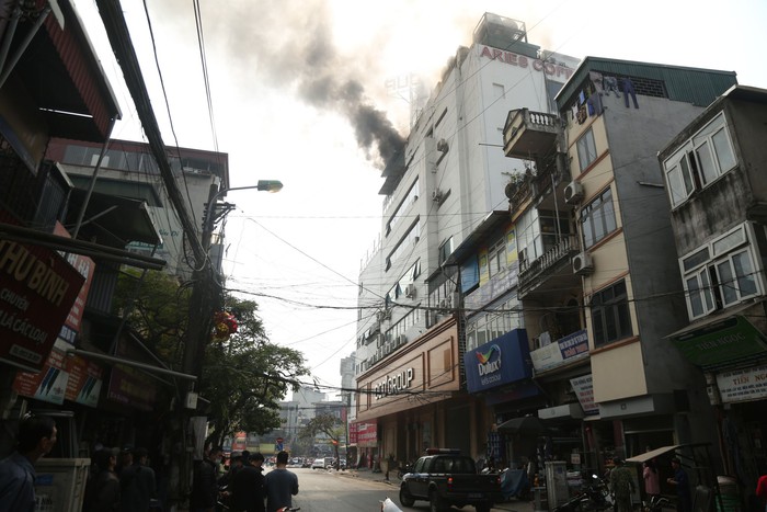 Nhiều người dân khu vực xung quanh nơi xảy ra vụ cháy cho biết đã nghe thấy những tiếng nổ lớn và khói bốc lên cao từ nóc của Trung tâm thương mại (TTTM) trên đường Ô Chợ Dừa.