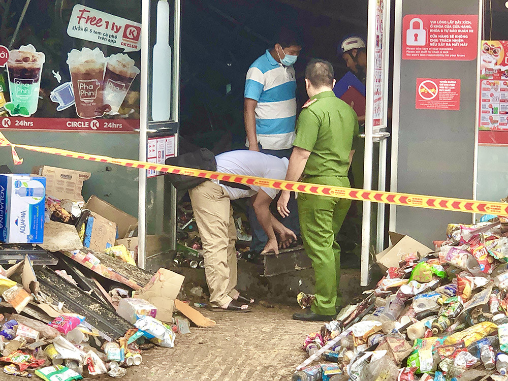 Chiều 18/1, lực lượng chức năng TP.HCM vẫn đang tiến hành phong toả, khám nghiệm bên trong cửa hàng Circle K nằm trên đường Vĩnh Hội (quận 4) để làm rõ nguyên nhân.