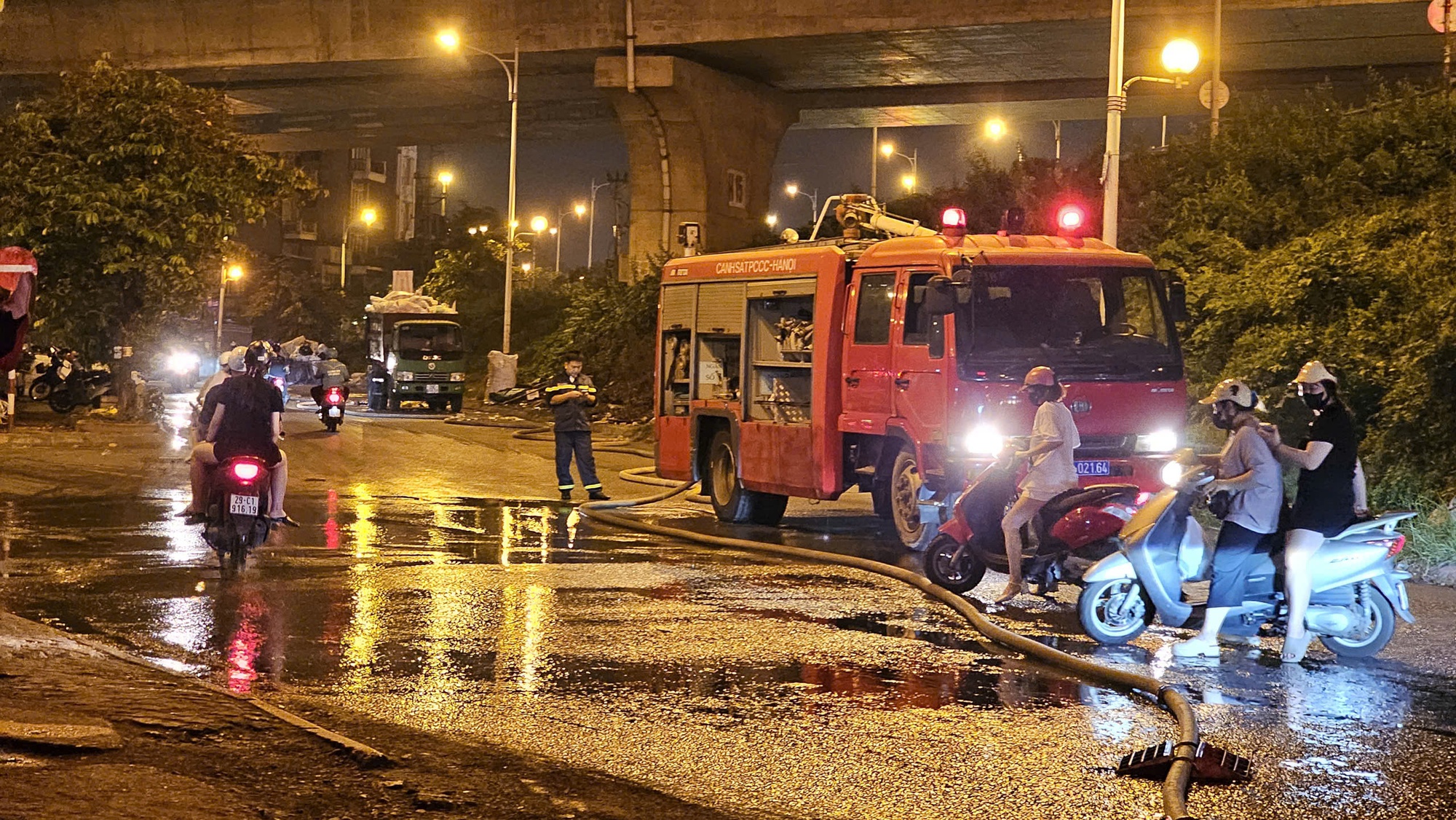 Theo ghi nhận của PV, vụ cháy xảy ra tại kho chứa hàng nằm trong khuôn viên Công tỷ CP ĐT xây lắp và Kinh doanh thiết bị Hà Nội, ngõ 124 Vĩnh Hưng, phường Vĩnh Tuy, quận Hoàng Mai, Hà Nội, sau đó tiếp tục lan sang xung quanh.