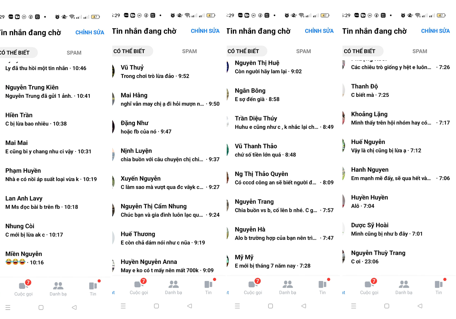 Những người còn lại trong nhóm còn nhắn tin riêng cho Hiển vờ hỏi chuyện rồi khoe quà được nhận. Cũng có người tỏ ra nghi ngại khi phải làm nhiệm vụ nộp tiền, nhưng chính người đó lại thúc giục Hiển “đâm lao phải theo lao thôi, dừng là mất tiền”. Có người nhắn tin rủ cô “chơi lớn”, chọn mức tiền cao hơn chứ mấy trăm ít quá…