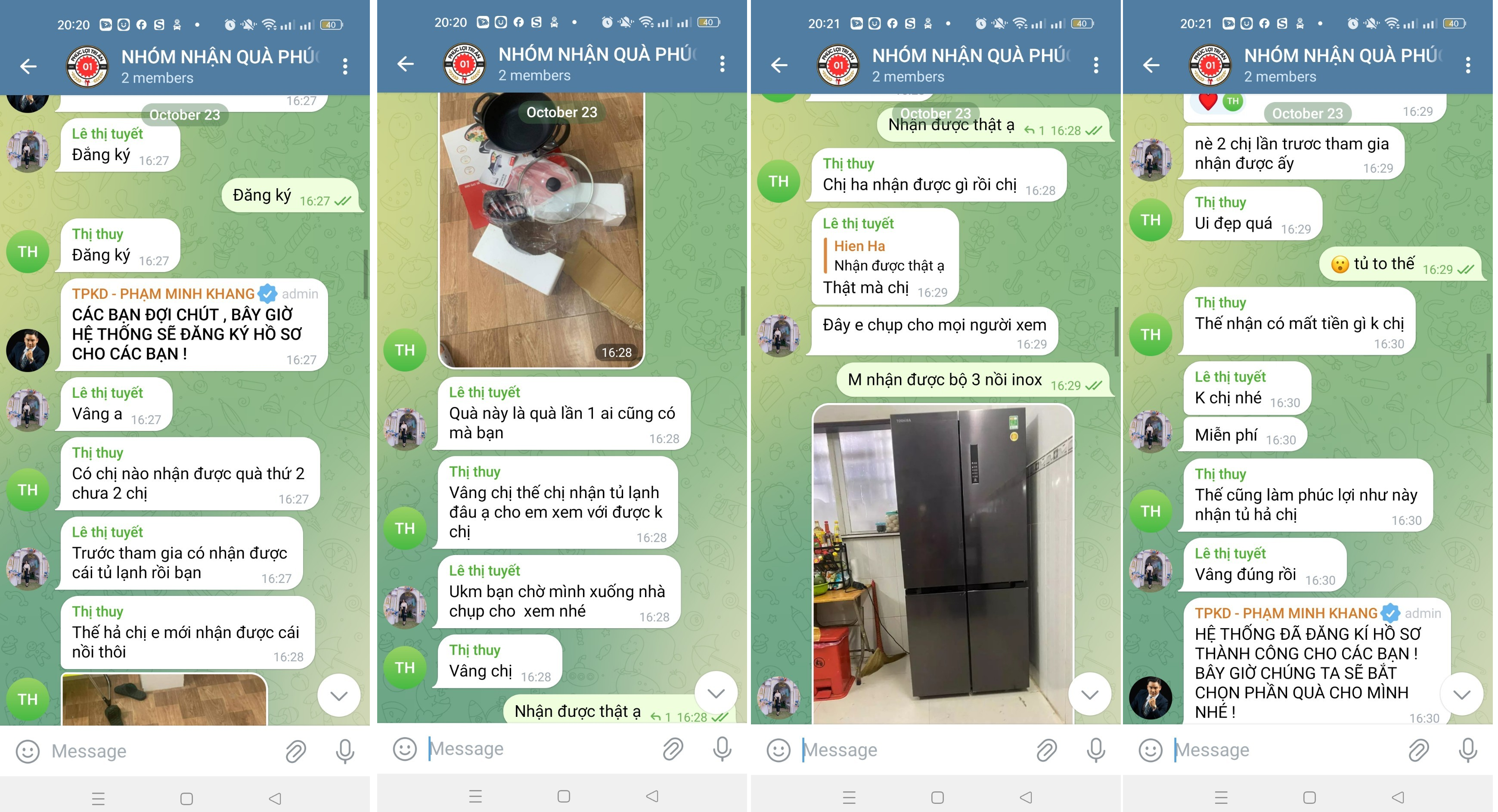 Theo lịch hẹn, 15h ngày 23/10, công ty (cách gọi của nhóm người trên) tổ chức hoạt động tri ân, bốc thăm trúng thưởng. Hiển bận chăm con sơ sinh nên chưa kịp tham gia. Một người tự xưng là quản lý gọi điện giục cô nhanh chóng vào nhóm để nhận quà.