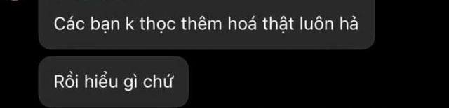 Một đoạn tin nhắn khác viết: “Các bạn không học thêm Hóa thật luôn hả? Rồi hiểu gì chứ?”.