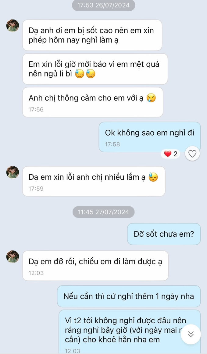 Ngày 26/7, T. bị sốt và được cho nhà hàng cho nghỉ làm 2 ngày (thứ 6 và thứ 7). Khoảng 5 phút sau khi T. xin nghỉ thì chính nhà hàng này nhận được một đơn order đồ ăn đến từ tên và số điện thoại của T. Chủ nghĩ nhân viên nghỉ làm nên đặt món tại nơi mình làm việc để “chuộc lỗi”, chủ nhà hàng còn gửi tặng 1 ly trà đào. Tổng đơn 630k đã giao thành công.