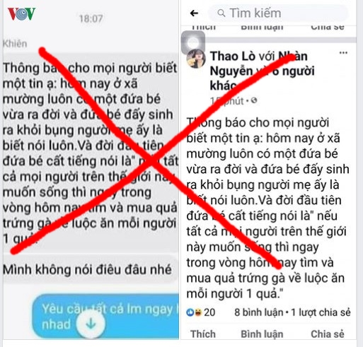 Zing đưa tin, ngày 6/2, tài khoản "Sương Đêm" đăng tin thất thiệt về việc ở Điện Biên có một đứa trẻ vừa ra đời đã biết "tiên tri" về kiếp nạn diệt vong của loài người: "Đứa bé có nói là nếu thế giới này, nhà nào không luộc trứng ăn thì sẽ chết hết, mỗi người ăn một quả trứng luộc sẽ thoát kiếp nạn này".