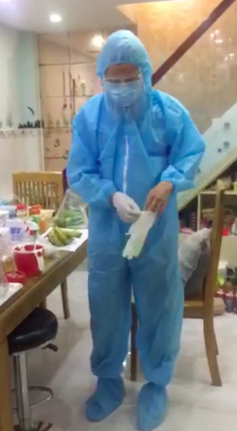 Chị cũng nhắc nhở những người đang có người thân là F0 tự cách ly tại nhà: "Nhớ khi chăm F0 phải đứng từ xa, mặc đồ bảo hộ. Mình chỉ đứng nhắc thôi, tuyệt đối không đụng vào thứ gì hết".