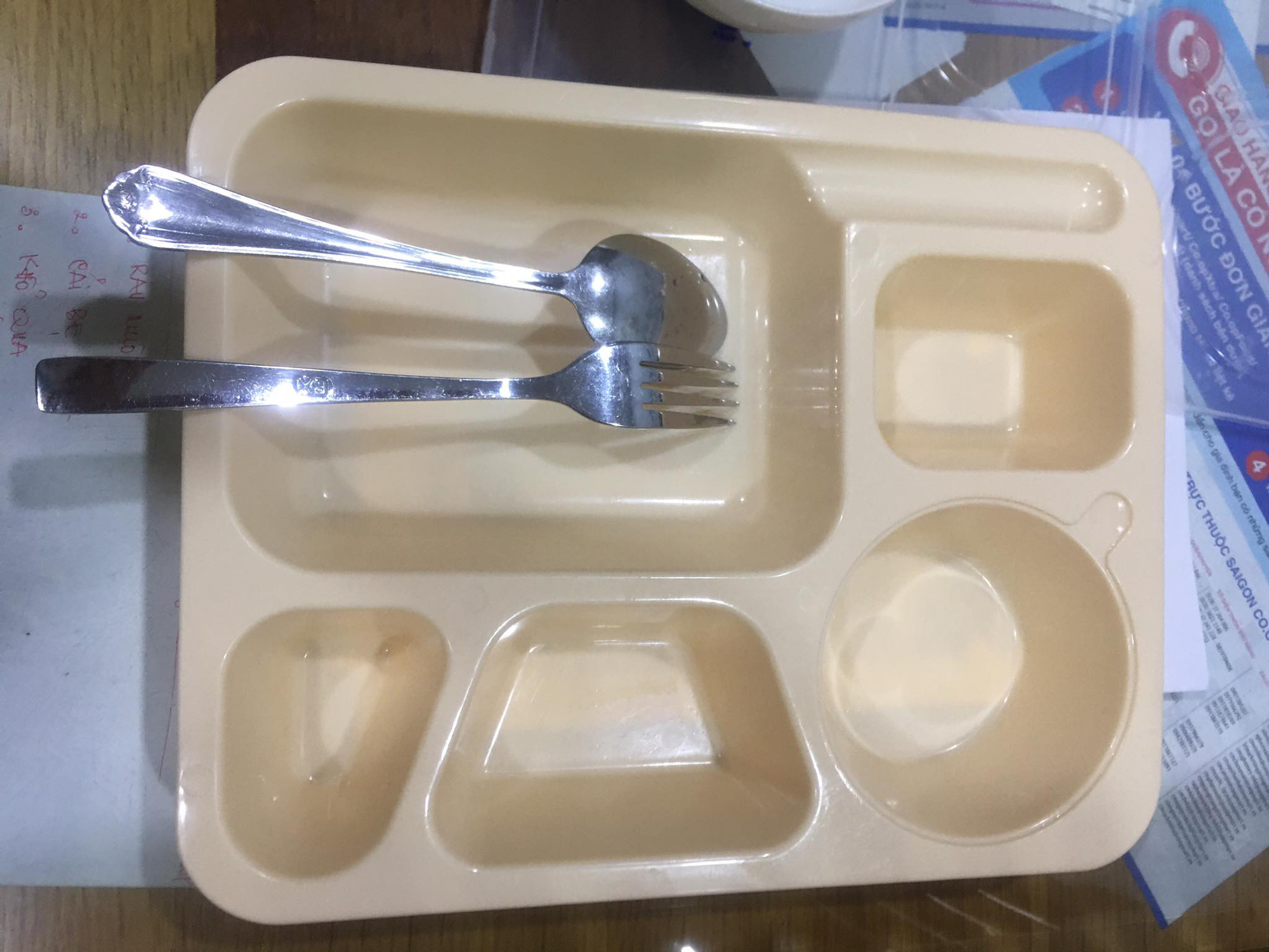 Khi F0 ăn xong bước ra để khay ăn thì vợ chồng chị sẽ phun xịt khu vực F0 mới đưa đồ ra. Sau 2 phút sẽ tiếp tục dùng nước sôi đổ vào. Đợi 2 phút mới rửa xà phòng và phơi khô. Đồ ăn của mỗi người được rửa riêng từng lần.