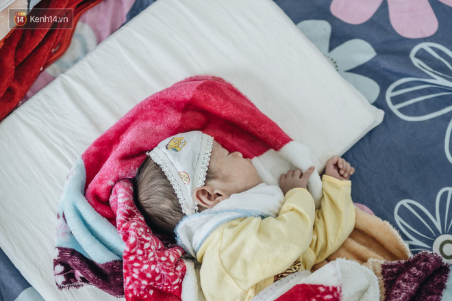 Miệng cười, mắt đỏ hoe, chị cố không khóc. Bình An như cảm nhận được hơi ấm mẹ, bất giác miệng mỉm cười, áp đôi má tròn vào ngực mẹ.