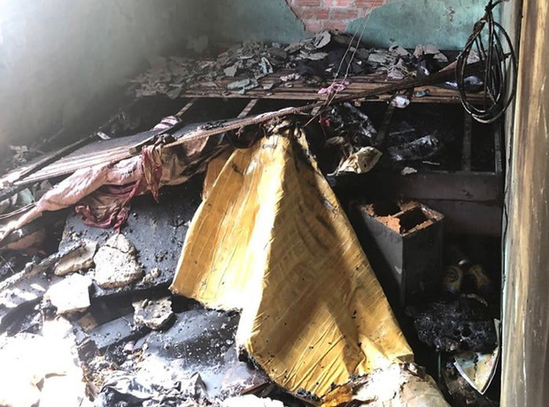 Sau hỏa hoạn, ông Pháp cũng thoát được ra ngoài nhưng đầu tóc bị cháy xém.