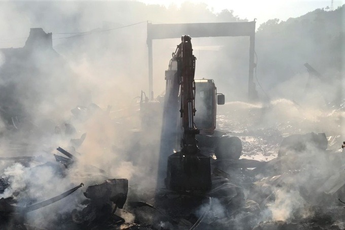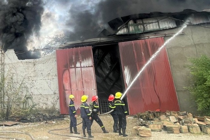 Do chứa nhiều vật liệu dễ cháy nên đám cháy bùng phát nhanh chóng, với cột khói cao hàng chục mét.