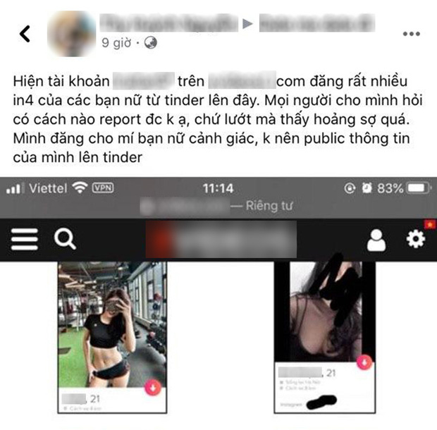 Tuy nhiên mới đây, dân tình bỗng trở nên hoang mang vô cùng trước thông tin có kẻ xấu lợi dụng không gian mở ở Tinder để ăn cắp profile các cô gái, sau đó đem đăng tải lên web đen. Sự việc làm dấy lên nỗi nghi ngại về bảo mật thông tin cá nhân cũng như những hệ lụy có thể xảy đến với các nạn nhân bị đăng ảnh.