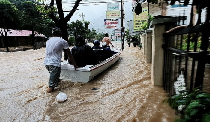 Khoảng 10h cùng ngày, nước tiếp tục dâng cao và chảy xiết ở nhiều khu vực trung tâm thành phố. Theo tờ VTC, khu vực tiếp giáp 2 phường Quang Trung và Nhơn Phú (TP Quy Nhơn, Bình Định) đã bị sạt lở nghiêm trọng.