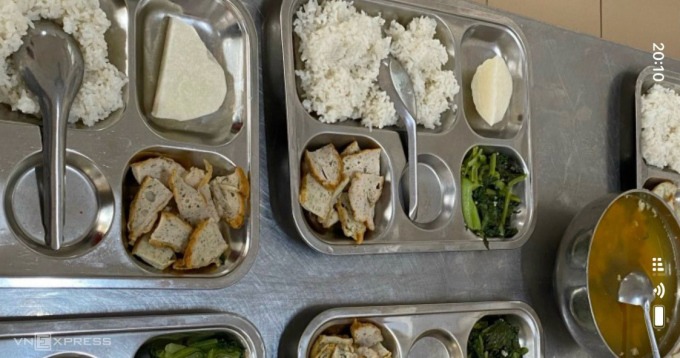 Theo bà Vân, nhà trường ký hợp đồng cung cấp suất ăn cho học sinh với một doanh nghiệp. Bữa trưa ngày 21/12 cho gần 1.390 học sinh của trường gồm chả cá, rau cải xào thịt, canh bí đỏ nấu thịt lợn băm, tráng miệng là món củ đậu; bữa phụ buổi chiều là món cháo thịt băm.