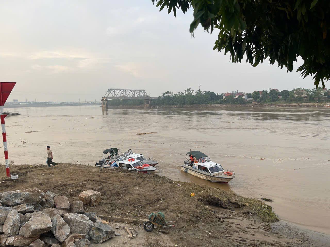 Theo đó, lực lượng công an, lực lượng quân đội dùng tàu cano, thuyền liên tục di chuyển trên sông Hồng và dọc 2 bờ sông trong nhiều giờ liền để tìm kiếm, trục vớt vật thể dưới lòng sông. Tại 2 bên bờ sông Hồng gần nơi xảy ra vụ việc, nhiều người dân, người thân của các nạn nhân gặp nạn không ngừng theo dõi quá trình lực lượng chức năng tìm kiếm. Họ mong ngóng về tin tức người thân của mình từng giờ.