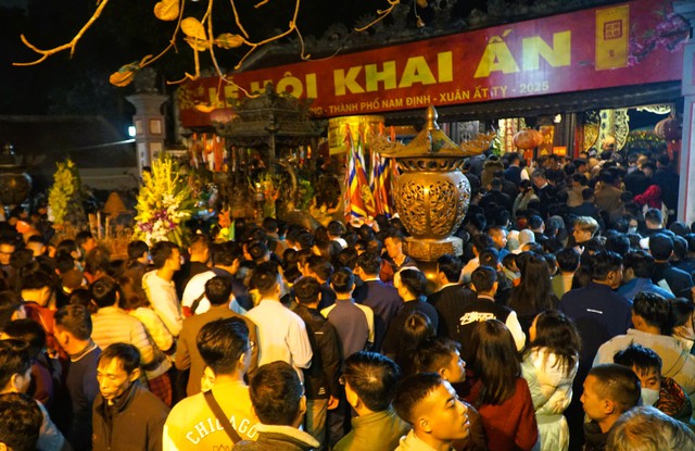 Tối 11-2 (tức ngày 14 tháng Giêng), lễ Khai ấn đền Trần Xuân Ất Tỵ 2025 được diễn ra tại di tích quốc gia đặc biệt đền Thiên Trường (phường Lộc Vượng, TP Nam Định, tỉnh Nam Định).
