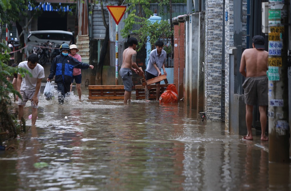 Hiện một số khu vực tại vùng "rốn lũ" Đà Nẵng vẫn còn đang ngập khiến người dân chưa thể quay về nhà. Đáng nói, trời cứ ngớt rồi lại mưa xối xả khiến họ lo lắng tài sản của mình còn bị ngâm nước dài dài.