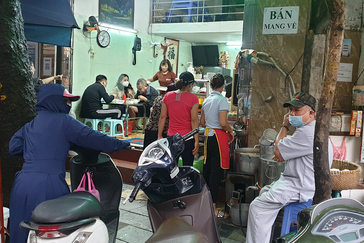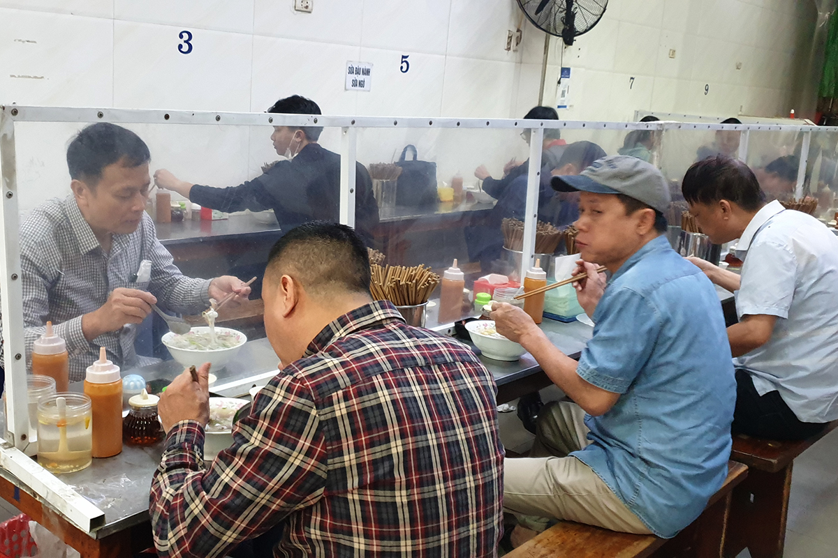 Người dân nườm nượp đi ăn phở trong buổi sáng đầu tiên TP Hà Nội cho phép được ăn uống tại chỗ.