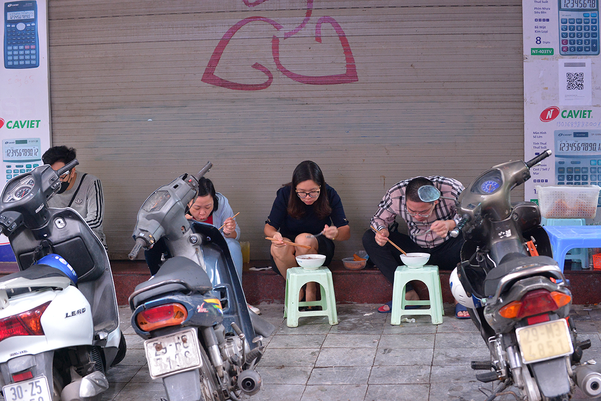 Nhiều quán phở nổi tiếng khác đều rơi vào tình trạng quá tải khi khách ùn ùn kéo đến. Một số khách phải đứng ngoài nhưng vẫn vui vẻ chờ đến lượt.