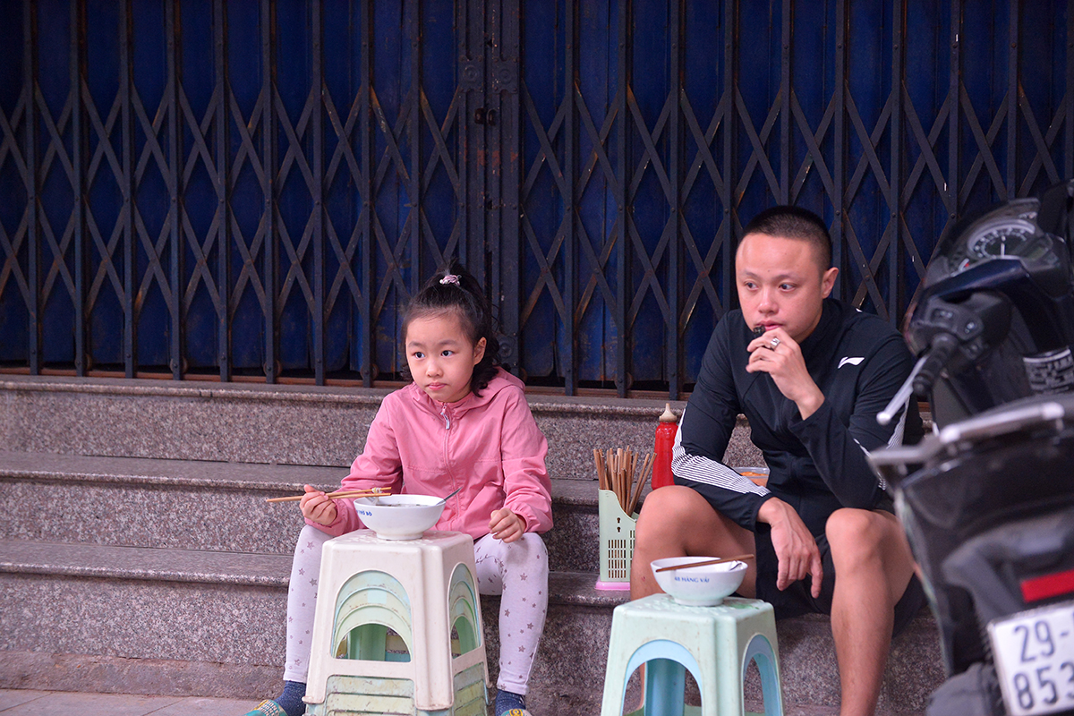 Từ 6 rưỡi sáng, quán phở Lâm nằm trên phố Hàng Vải đã đông nghịt khách hàng. Diện tích quán khá nhỏ, nhiều người phải kê bàn, ghế ra vỉa hè để thưởng thức món ăn mình ưa thích.