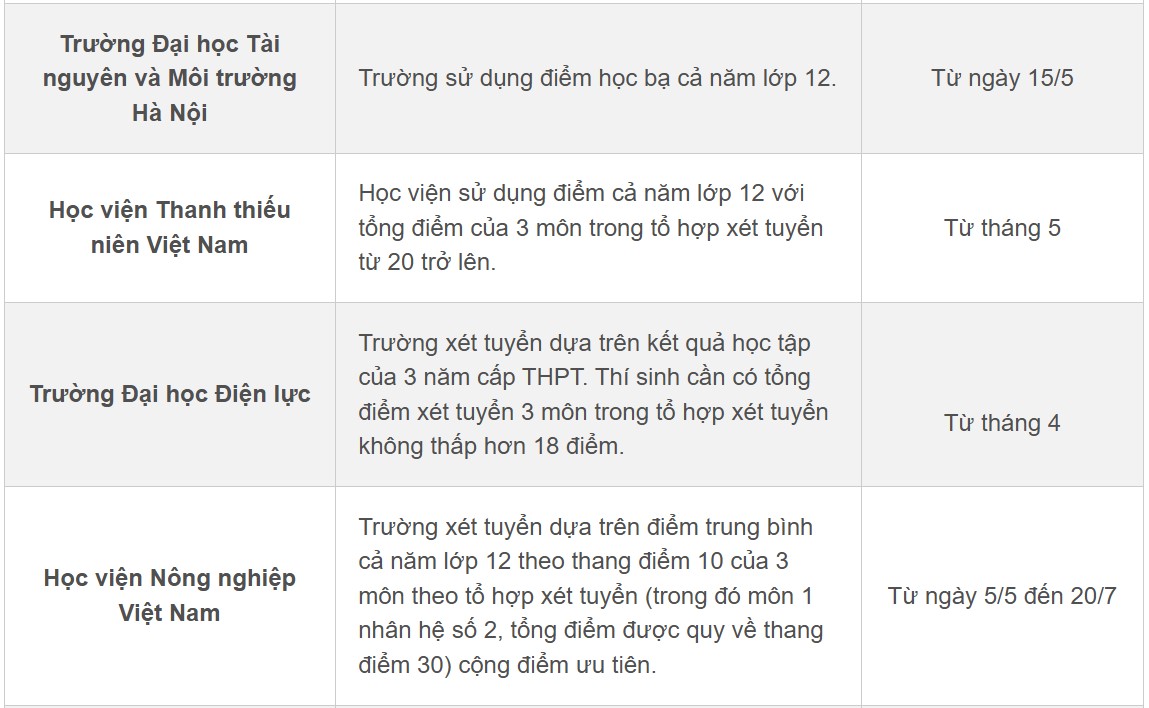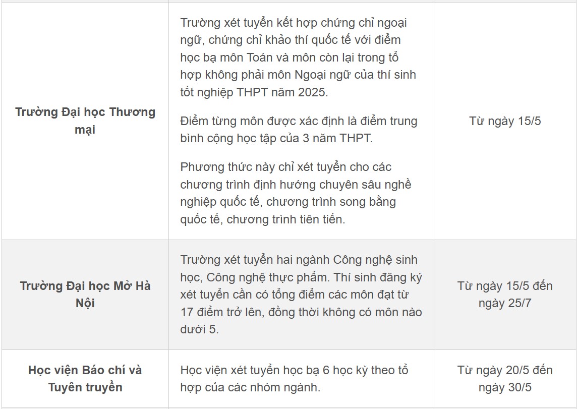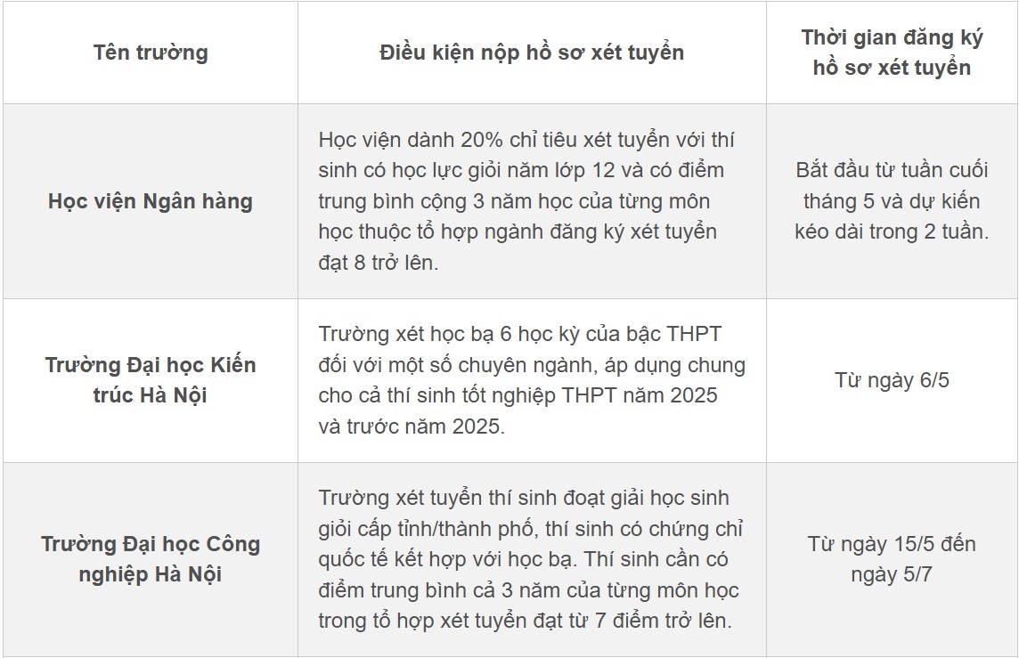 Mặc dù theo quy định mới của Bộ Giáo dục và Đào tạo, từ năm 2025 các hình thức xét tuyển đại học đều phải tuân thủ lịch chung, nhưng hiện nay nhiều trường vẫn triển khai việc thu nhận hồ sơ xét tuyển học bạ từ giữa tháng 5 như một bước chuẩn bị ban đầu.