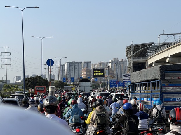 Trời về chiều nhưng dòng người và phương tiện đi từ các quận trung tâm TP HCM về TP Thủ Đức phải… toát mồ hôi vì nhiều đoạn ùn ứ nghiêm trọng.