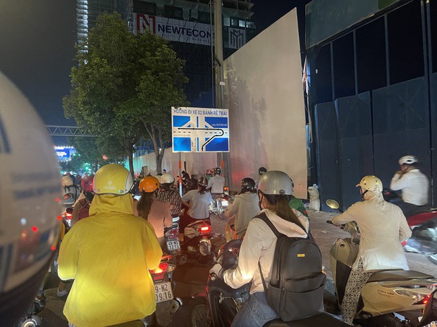 Theo ghi nhận, dù tình hình giao thông phức tạp nhưng khu vực trước Trạm thu phí Xa lộ Hà Nội (đường Võ Nguyên Giáp) vẫn tổ chức thi công mặt đường vào giờ cao điểm tan tầm (từ 17 giờ 30 cùng ngày).