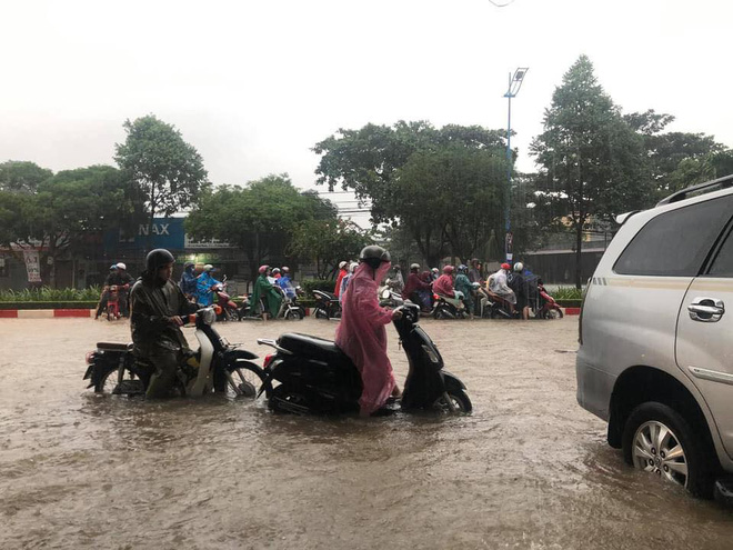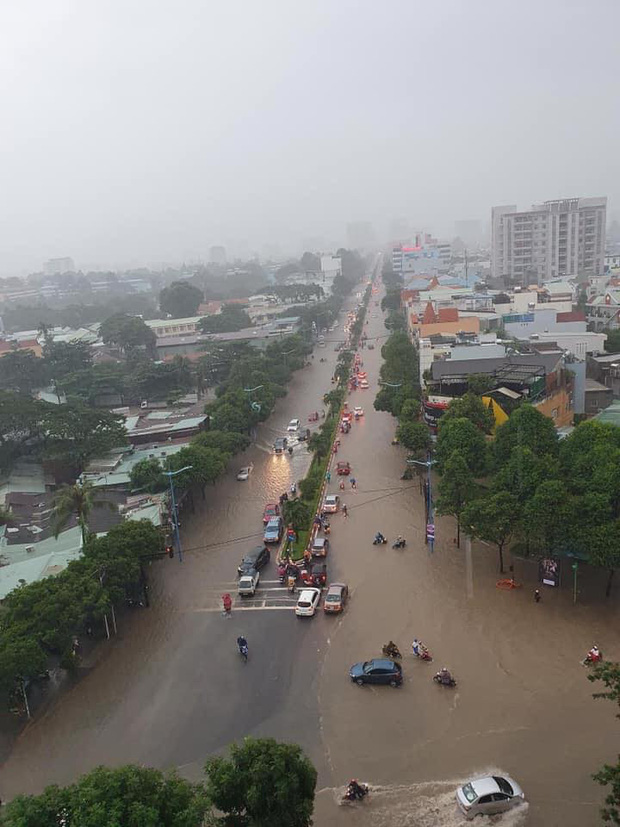 Tại TP.Vũng Tàu, cơn mưa lớn từ khoảng 4 giờ sáng ngày 6/11 làm hầu hết các tuyến đường trên địa bàn bị ngập sâu. Xe ô tô và xe máy chết máy hàng loạt gây ra ách tắc giao thông trong khoảng thời gian dài.