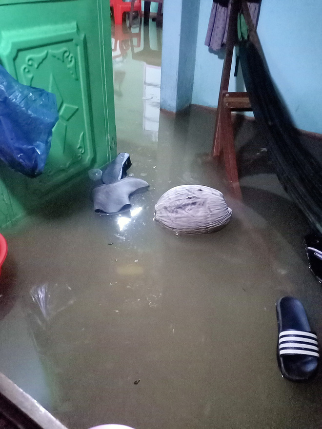 Nhiều nhà dân chưa kịp khắc phục hết thiệt hại do cơn bão số 9 gây ra đã lại phải chật vật ứng phó với bão số 10. Nước mưa lớn tràn vào nhà ngay trong đêm khiến nhiều người dân không kịp trở tay.