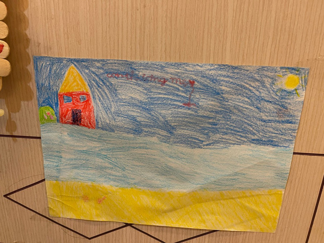 Trao đổi với báo Doanh Nghiệp & Tiếp Thị, chị L. - bác của bé V.A. cho biết đây là những bức tranh bé vẽ trong thời gian hiếm hoi về thăm mẹ từ năm 2020. Đây đều là những kỷ vật vô giá và cũng đầy đau lòng mà gia đình còn lưu lại về bé V.A.