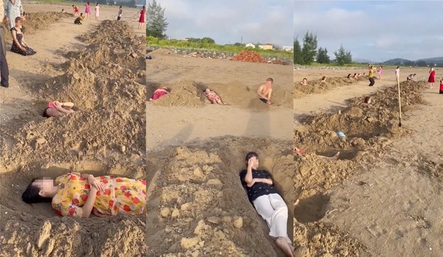 24/08/2022 22:33Nhóm du khách đào hố cát 'nằm thiền' trên bãi biển: 'Các hố cát đào sẵn rồi lấp lại, chỉ trừ phần mũi để thở'