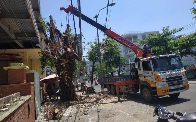 Công ty công viên cây xanh Đà Nẵng xác nhận nhóm người có hành vi cẩu cây cổ thụ trên trước đó đã tiến hành cắt cành và nhánh cây cổ thụ này vào ngày 17/5.
