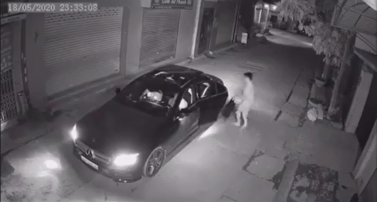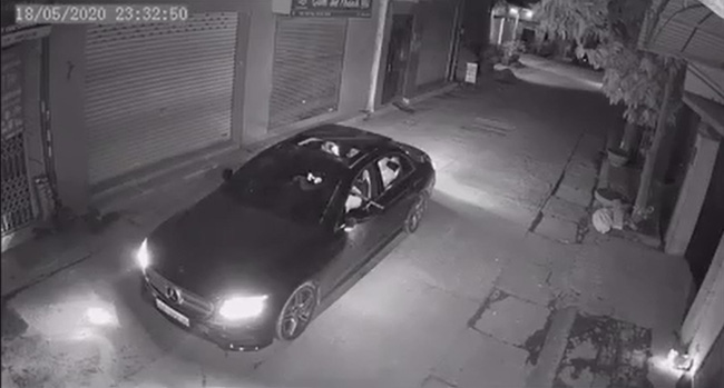 Theo đó, trong một hẻm vắng một chiếc xế hộp hiệu Mercedes mang biển kiểm soát Hà Nội đang di chuyển thẳng vào ngõ nhưng sau đó bất ngờ lùi lại và dừng trước cửa 1 nhà dân.