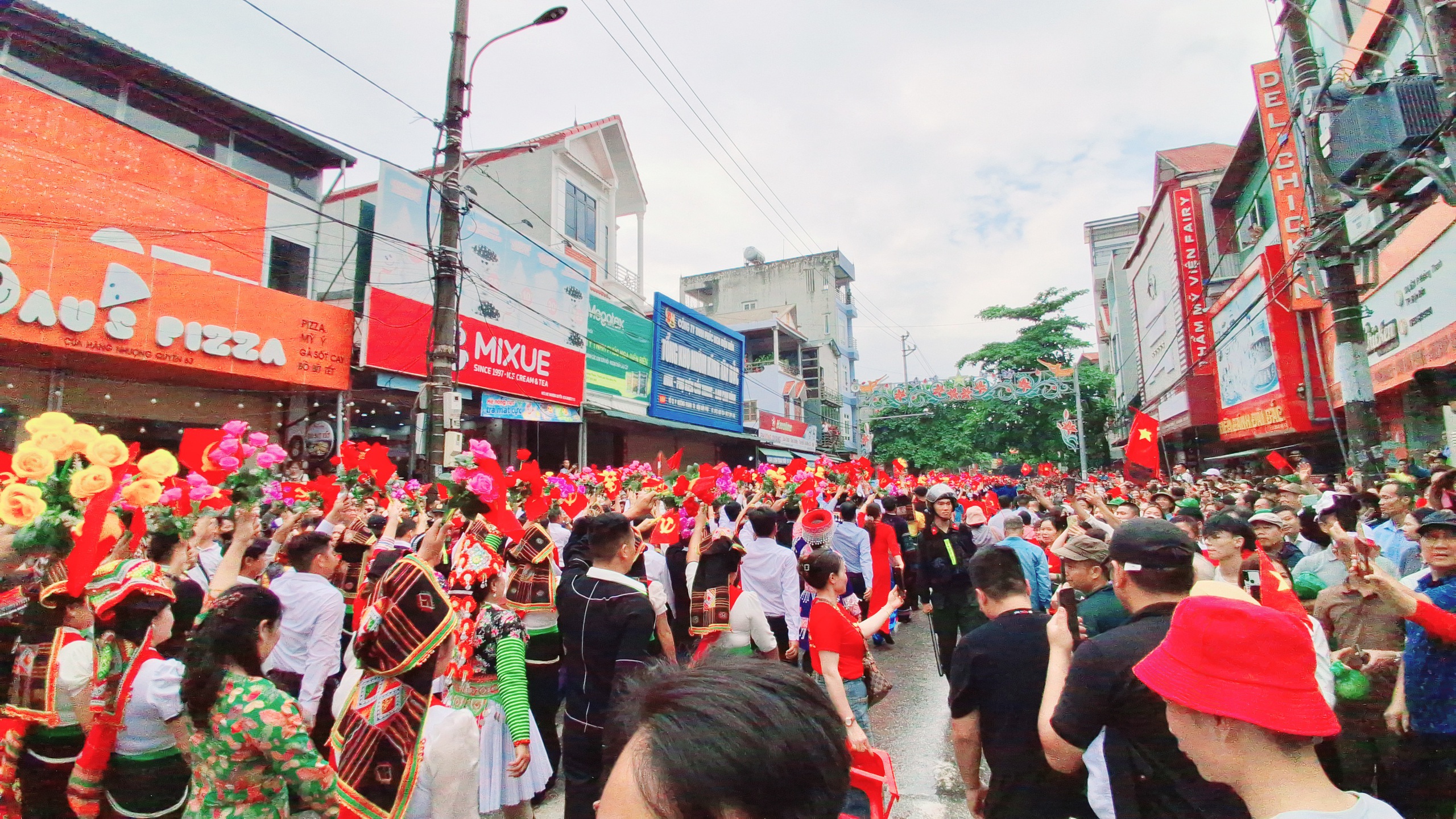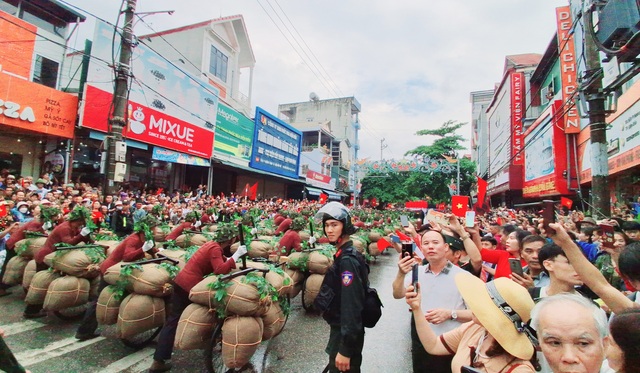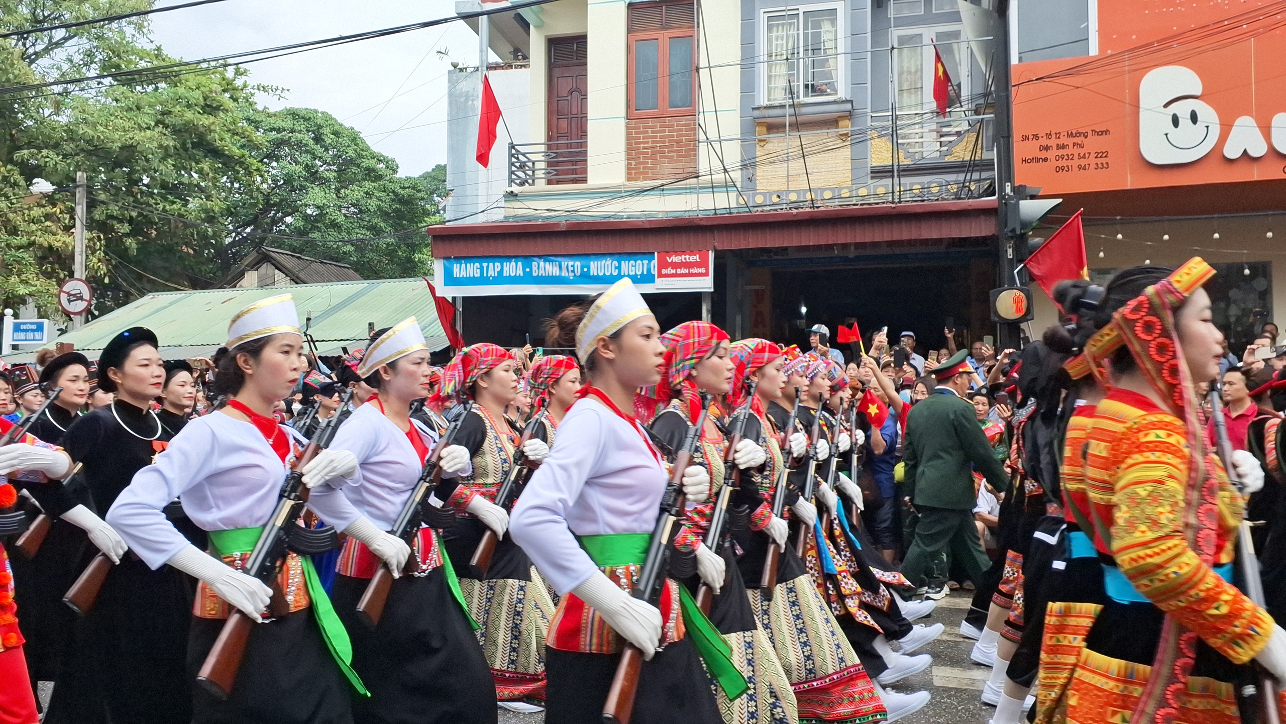 Các khối diễu binh, diễu hành đi từ sân vận động tỉnh Điện Biên đến ngã tư điểm giao giữa đường Hoàng Văn Thái và Võ Nguyên Giáp rồi chia thành 3 tuyến đi dọc theo các con phố chính. Nhân dân nồng nhiệt chào mừng các khối diễu binh, diễu hành trên đường phố Điện Biên Phủ.