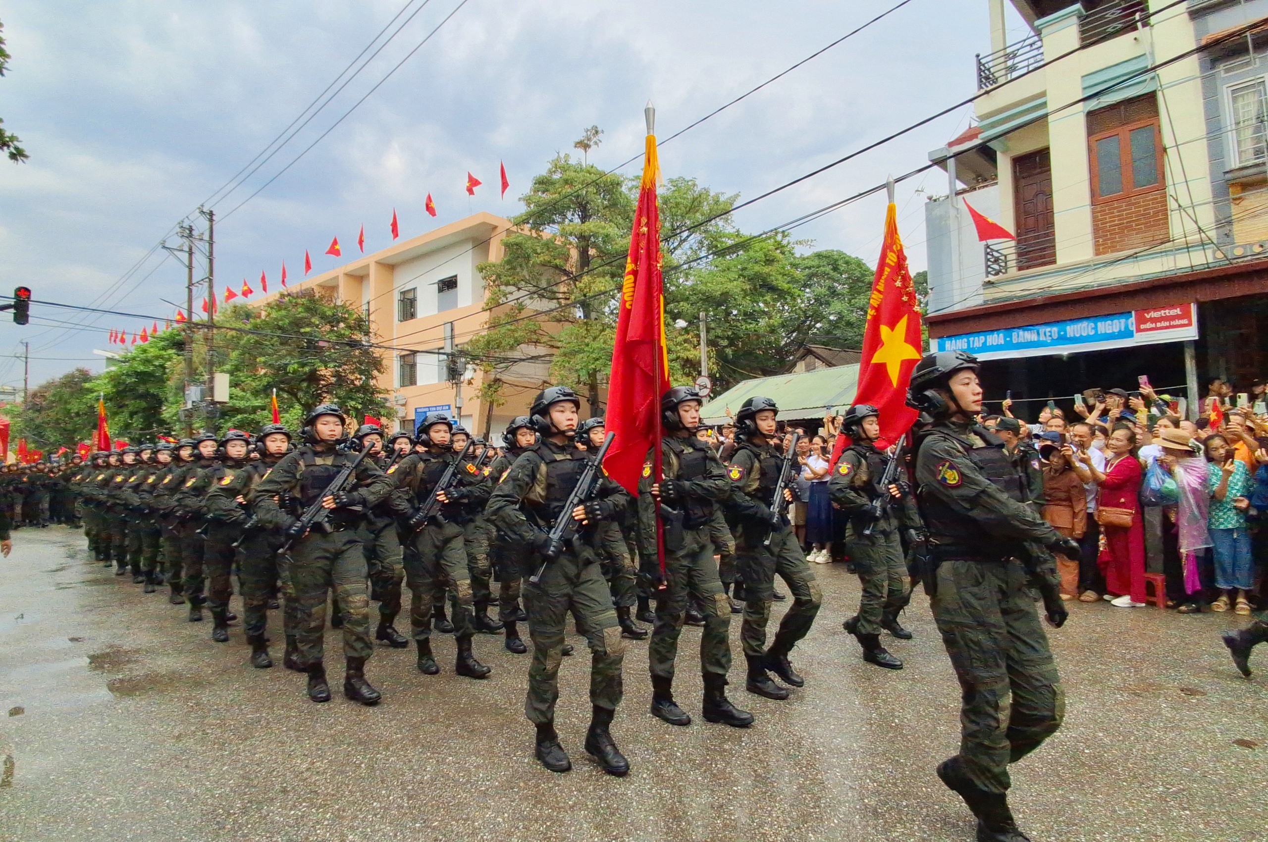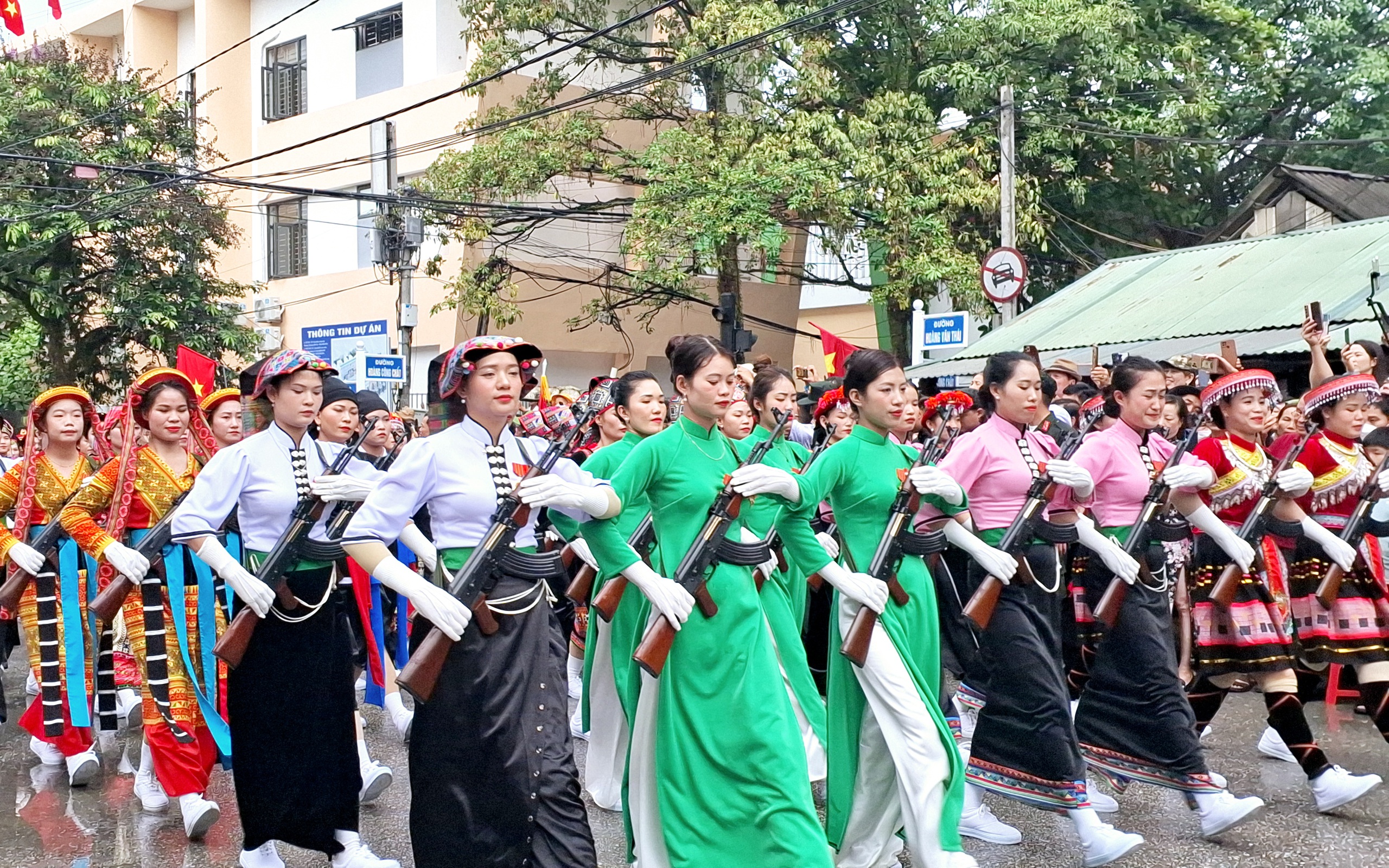 Sau Lễ mít tinh tại Sân Vận động tỉnh Điện Biên là Lễ diễu binh, diễu hành với sự tham gia của khoảng 12.000 người, gồm tất cả các lực lượng của Quân đội, Dân quân tự vệ và Công an, các ban ngành, đoàn thể xã hội.