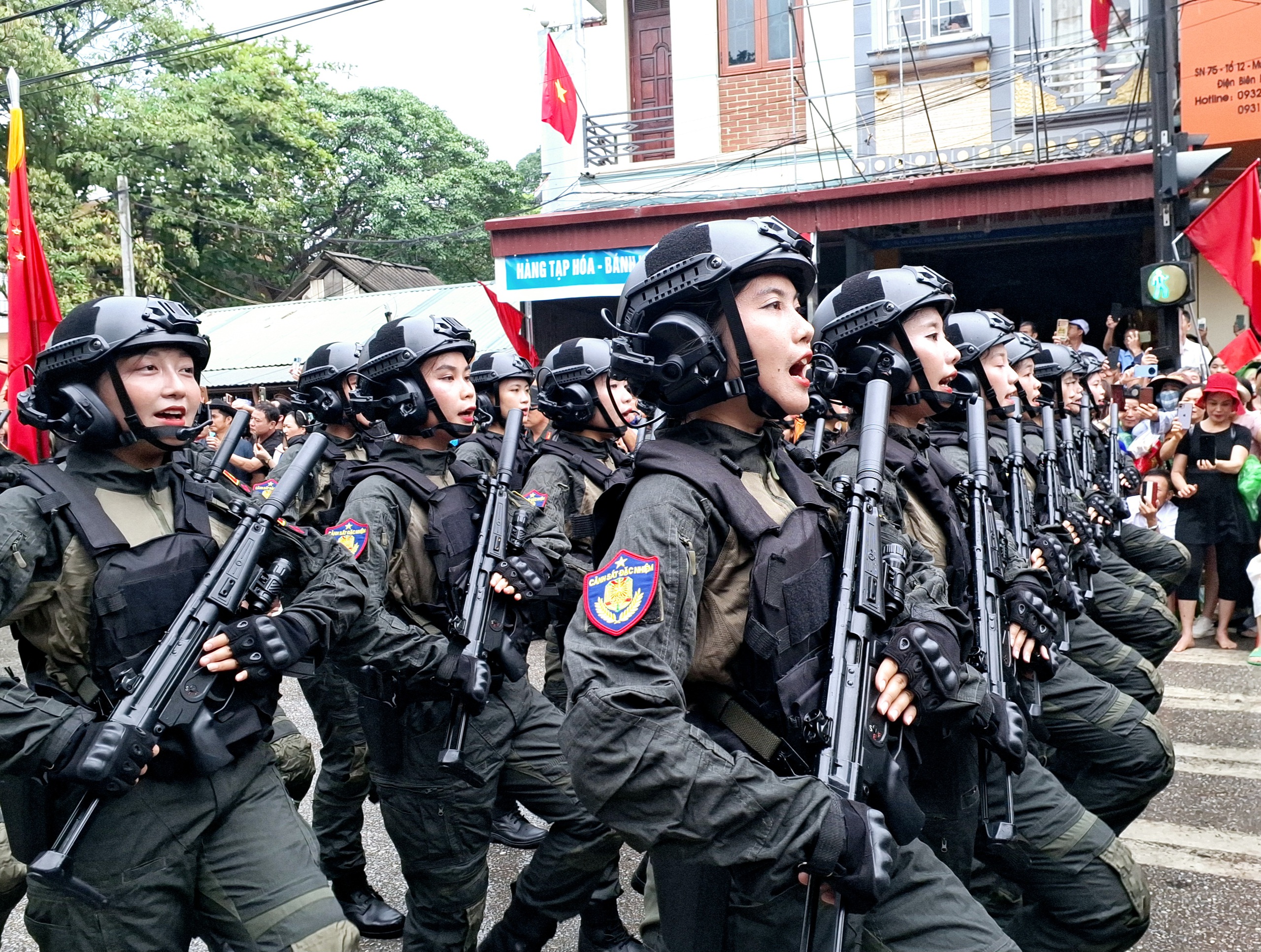 Tiếp đó là phần diễu binh, diễu hành. Tham gia diễu binh, diễu hành trong lễ kỷ niệm có toàn bộ 51 khối, trong đó 16 khối quân đội, 8 khối công an, còn lại 27 khối là các lực lượng khác như: Cựu chiến binh, phụ nữ, thanh niên, trí thức… Các khối diễu binh, diễu hành là điểm nhấn quan trọng, thể hiện sự hùng tráng, biểu dương lực lượng, khẳng định ý nghĩa, tầm vóc, giá trị lịch sử vĩ đại của Chiến thắng Điện Biên Phủ.