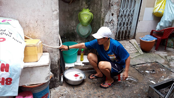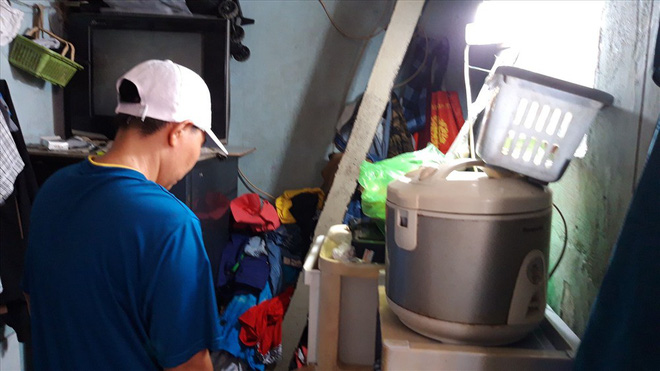 Bà Dung cho biết thêm, hàng ngày, mấy mẹ con chỉ nấu ăn bữa tối, còn ban ngày thì mỗi người một việc nên tiện đâu ăn đấy. Bếp nấu ăn và chỗ rửa chén được đặt ngay bên ngoài lối đi chung, hôm nào mưa lớn không nấu ăn được thì cả nhà ăn tạm mỳ gói.