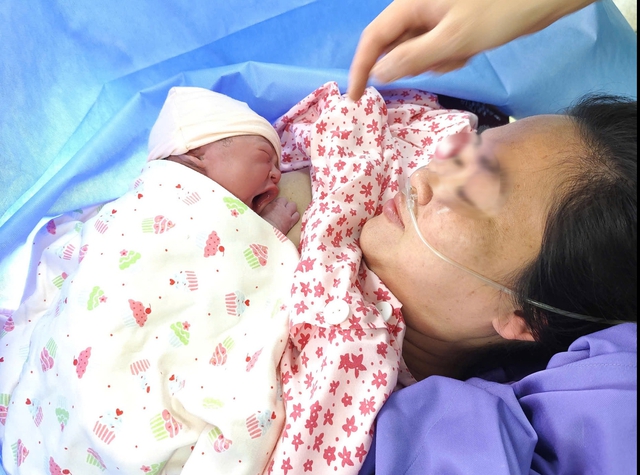 Sau sinh, cả trẻ và mẹ đều ổn định sức khỏe, trẻ khóc to, phản xạ tốt, được ghép "da kề da" với mẹ.