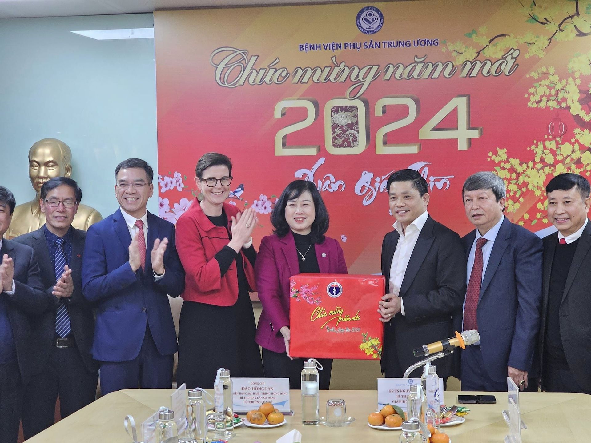 Trước đó, gần tới Giao thừa Tết Giáp Thìn 2024, Bộ trưởng Y tế Đào Hồng Lan đã có mặt tại Bệnh viện Phụ sản Trung ương thăm hỏi và động viên các y bác sĩ và cán bộ bệnh viện. Cùng tham gia đoàn có bà Angela Pratt - Trưởng đại diện Tổ chức Y tế Thế giới (WHO) tại Việt Nam và đại diện lãnh đạo các Vụ/Cục/ Văn phòng Bộ Y tế.